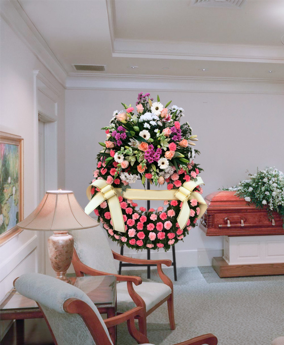 En In Memory D trabajamos con expertos floristas en arreglos de flores funerarias. Nuestros trabajos se elaboran con flores de excelente calidad. Todas nuestras composiciones funerarias tienen incluida una cinta funeraria, donde es posible escribir un mensaje de despedida idóneo para su ser querido. Después de realizar el arreglo funerario, nuestro Equipo de In Memory D se encarga de llevar las flores a la sala del Tanatorio o al lugar indicado. Ofrecemos el servicio de envío de flores a la gran mayoría de Tanatorios.